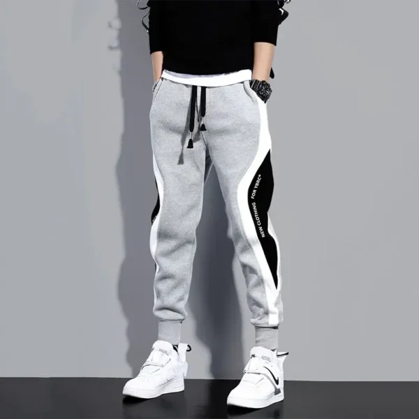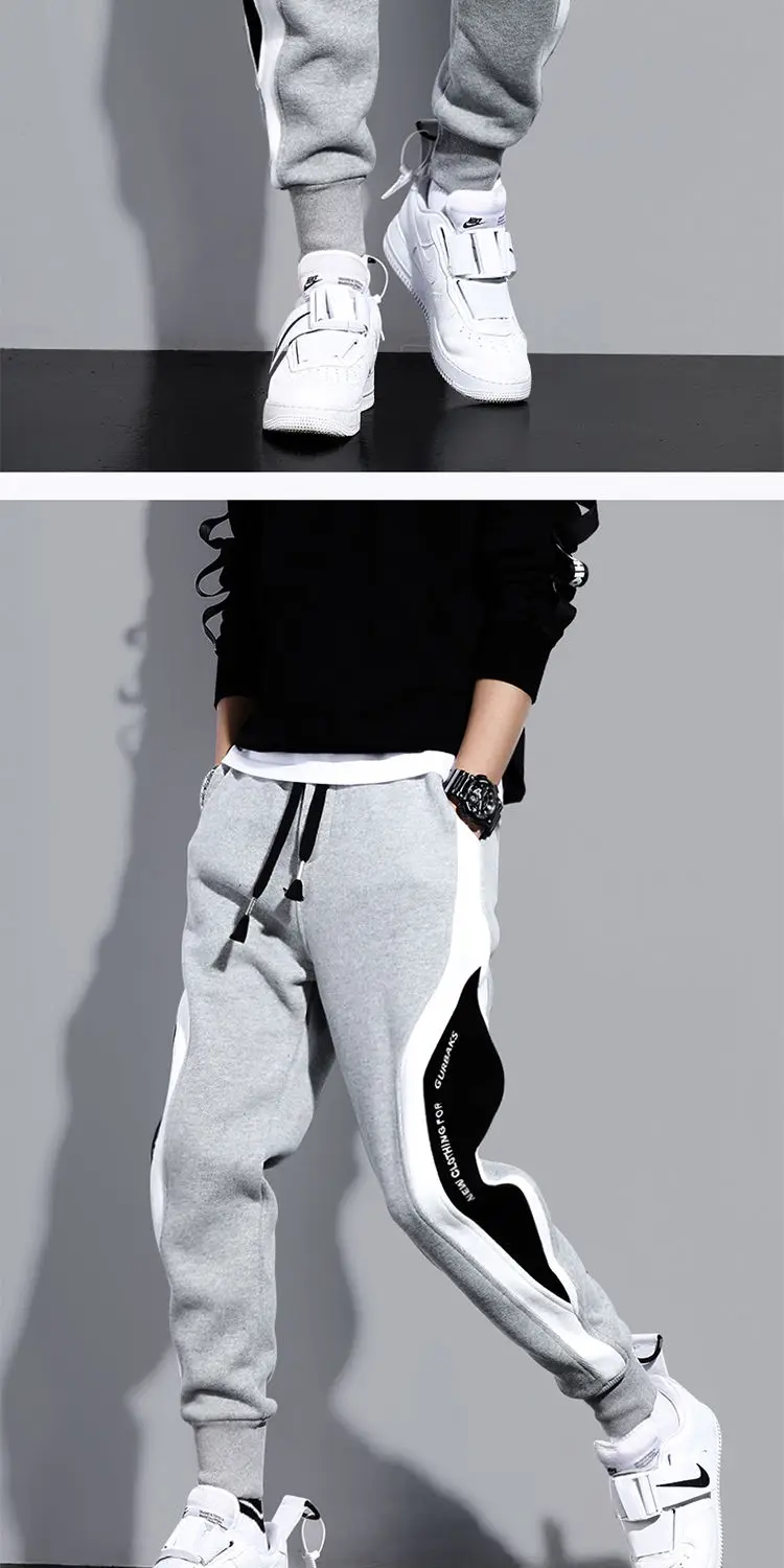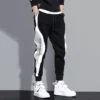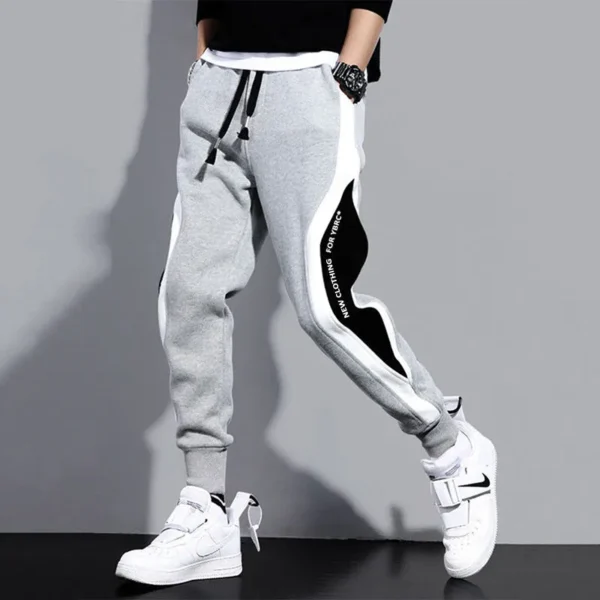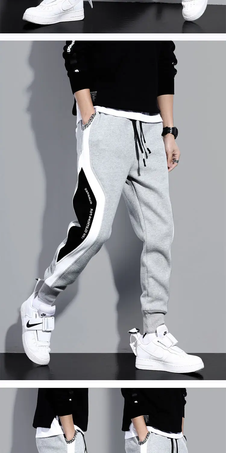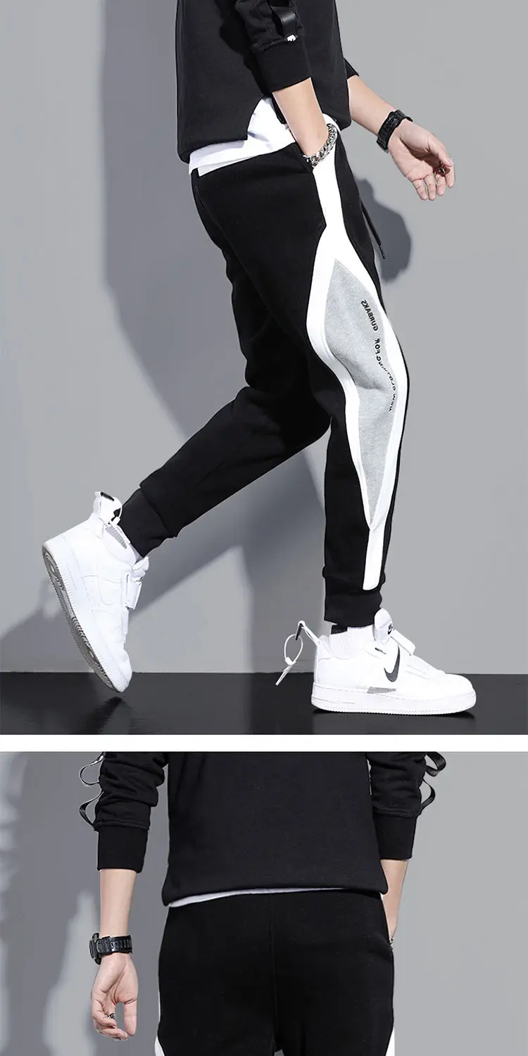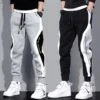 Autumn Men’s Wide Loose Casual Pants Mens Patchwork Nine-point Sports Elastic Rope Breathable Tie-foot Trousers