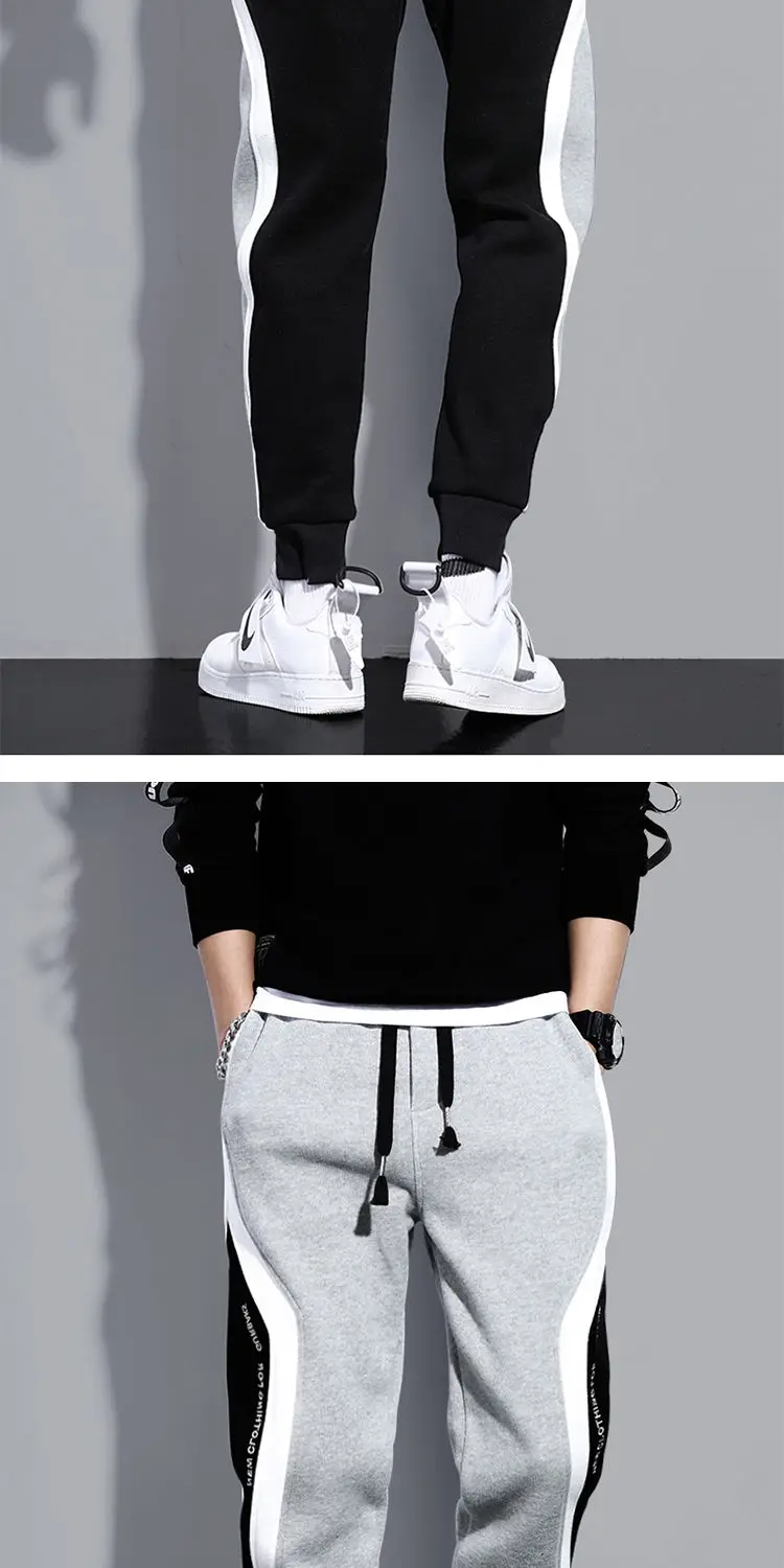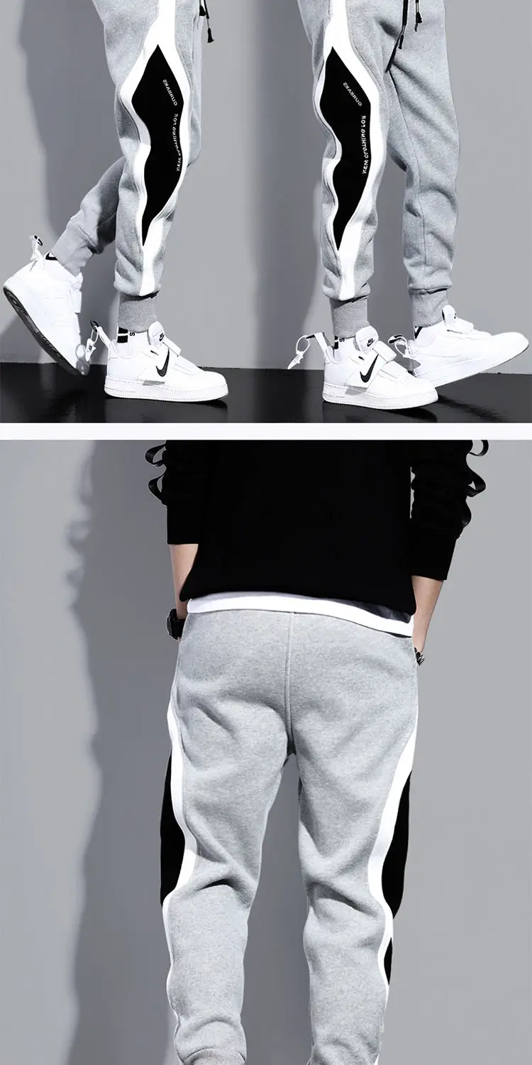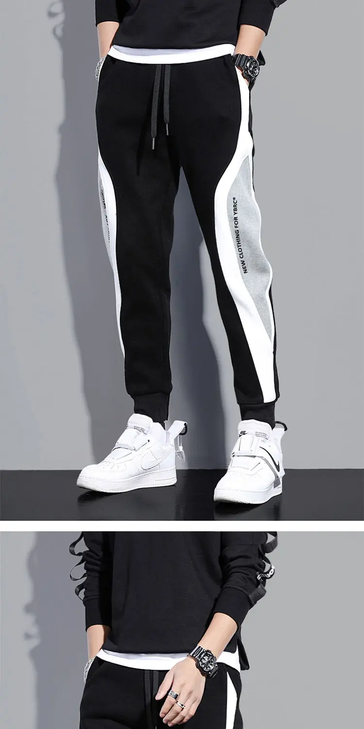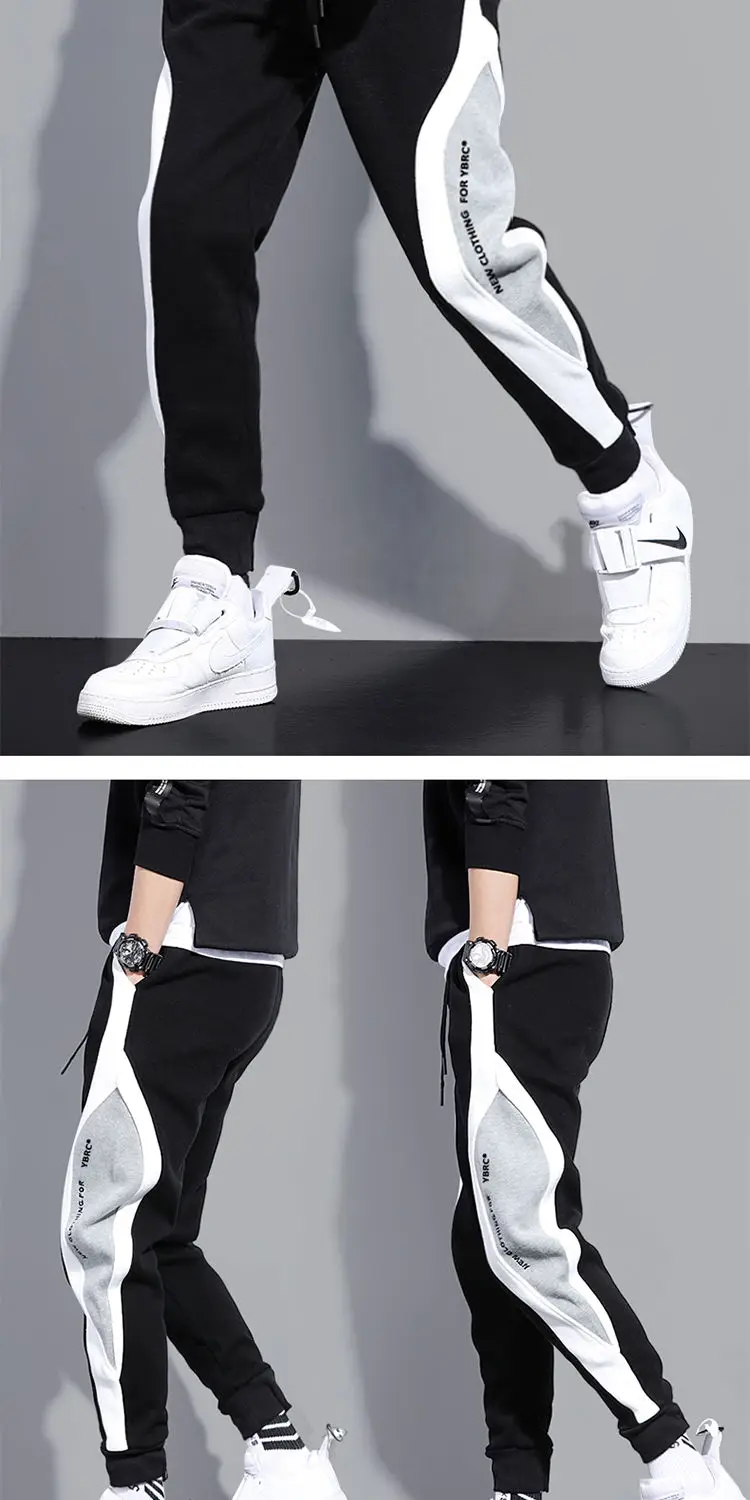 Autumn Men’s Wide Loose Casual Pants Mens Patchwork Nine-point Sports Elastic Rope Breathable Tie-foot Trousers