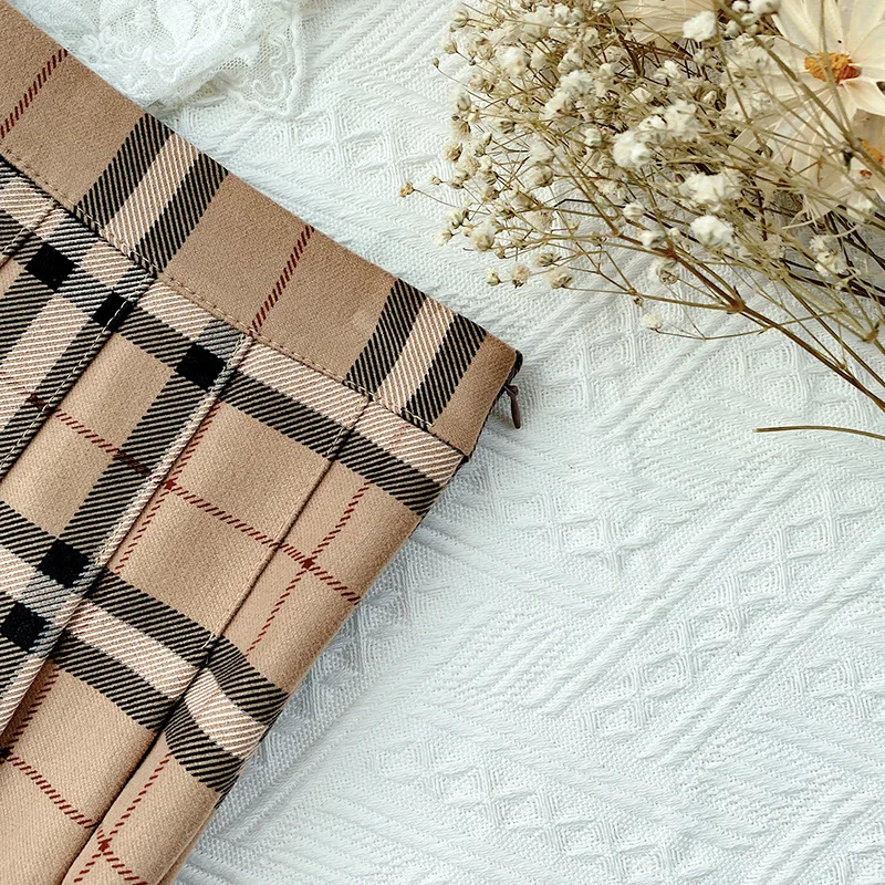 Be the first to review “Contrast Color Plaid Striped Skirt Korean Version of Pleated Skirt Autumn High Waist A Line Plaid Mini Skirt Student Style Sweet”