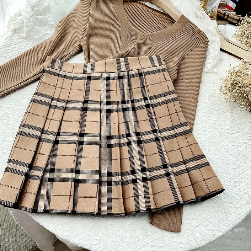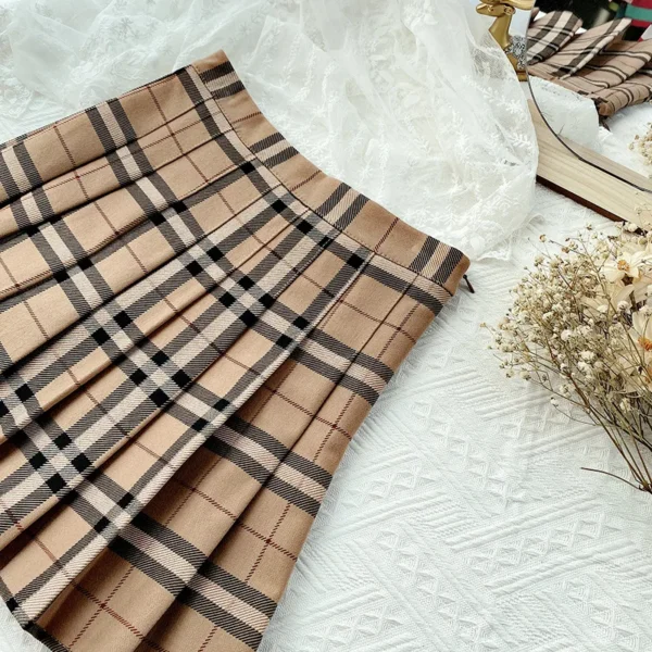 Be the first to review “Contrast Color Plaid Striped Skirt Korean Version of Pleated Skirt Autumn High Waist A Line Plaid Mini Skirt Student Style Sweet”