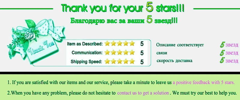 1.If you are satisfied, please leave 5 stars feedback, we will be very grateful.