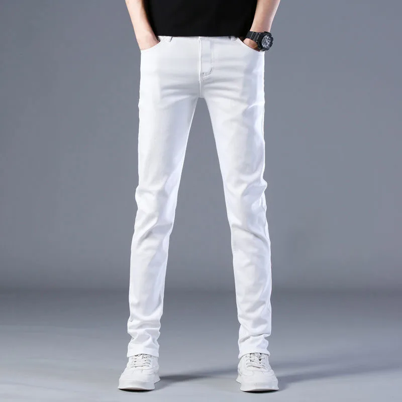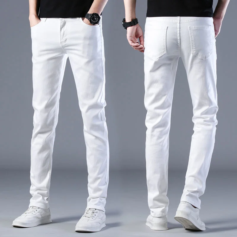 Men’s Fashion Brand Elastic Slim Fit Denim Long Pants Casual White Straight Leg Y2k Jeans For Men Streetwear