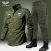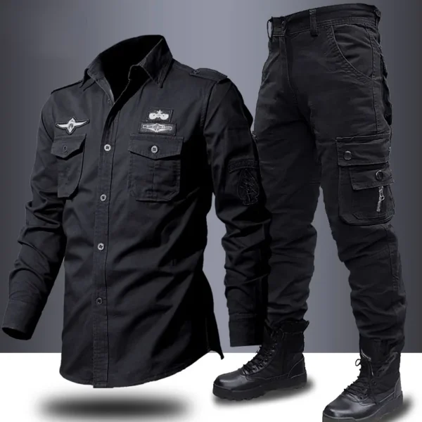 Military Cargo Sets Men Spring Autumn Multi-pocket Bomber Long Sleeves Shirts Wear-resistant Straight Pant 2 Pcs Army Flight Set