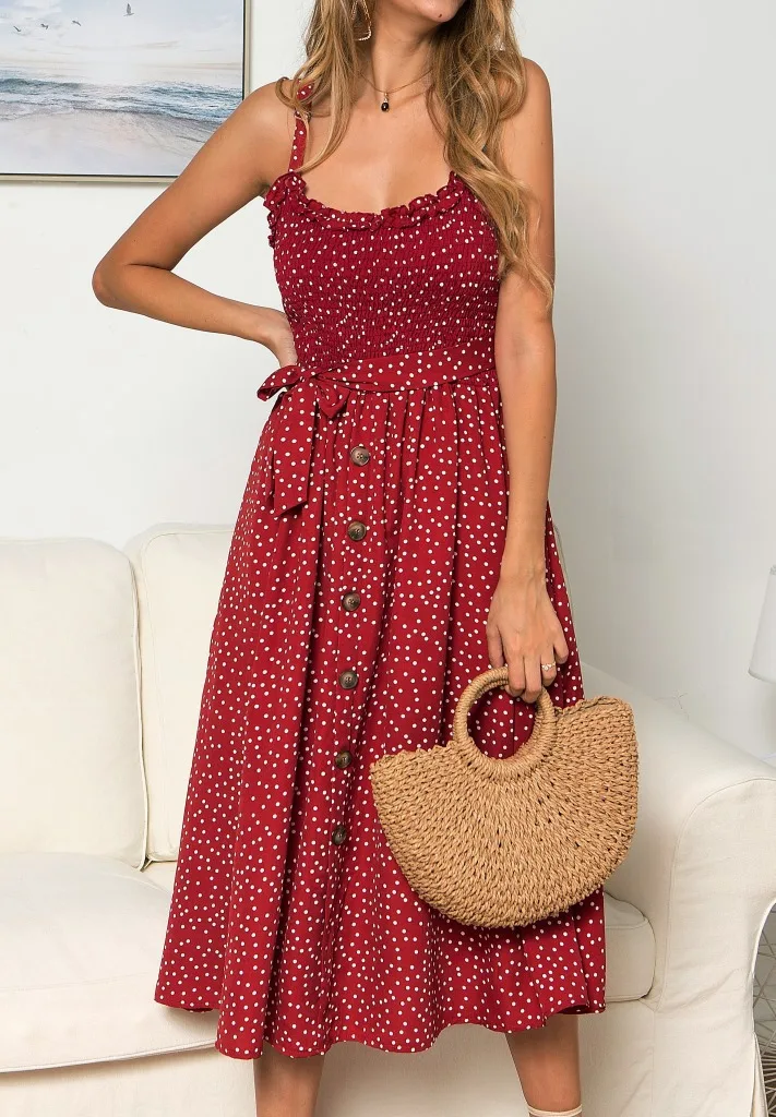 Be the first to review “Sexy Summer Sleeveless Slip Dress Women Strapless Bow Button Loose Bandage Pleated Polka Dot Sundress Casual Backless Vestidos”
