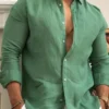 Solid Color Cotton Linen Plain Shirt Men Classic Button-up Lapel Long Sleeve Shirts Spring Autumn Fashion Loose Mens Top Shirts