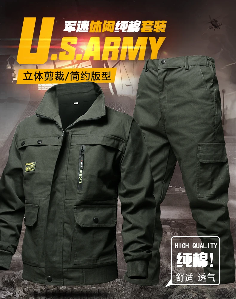 Spring Autumn Cotton Military Sets Men Multi-Pockets Wear-resistant Causal Shirts Cargo Pants Outdoor Combat Tactical Suits Male