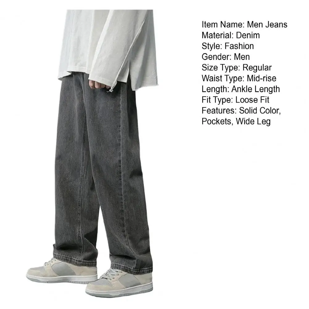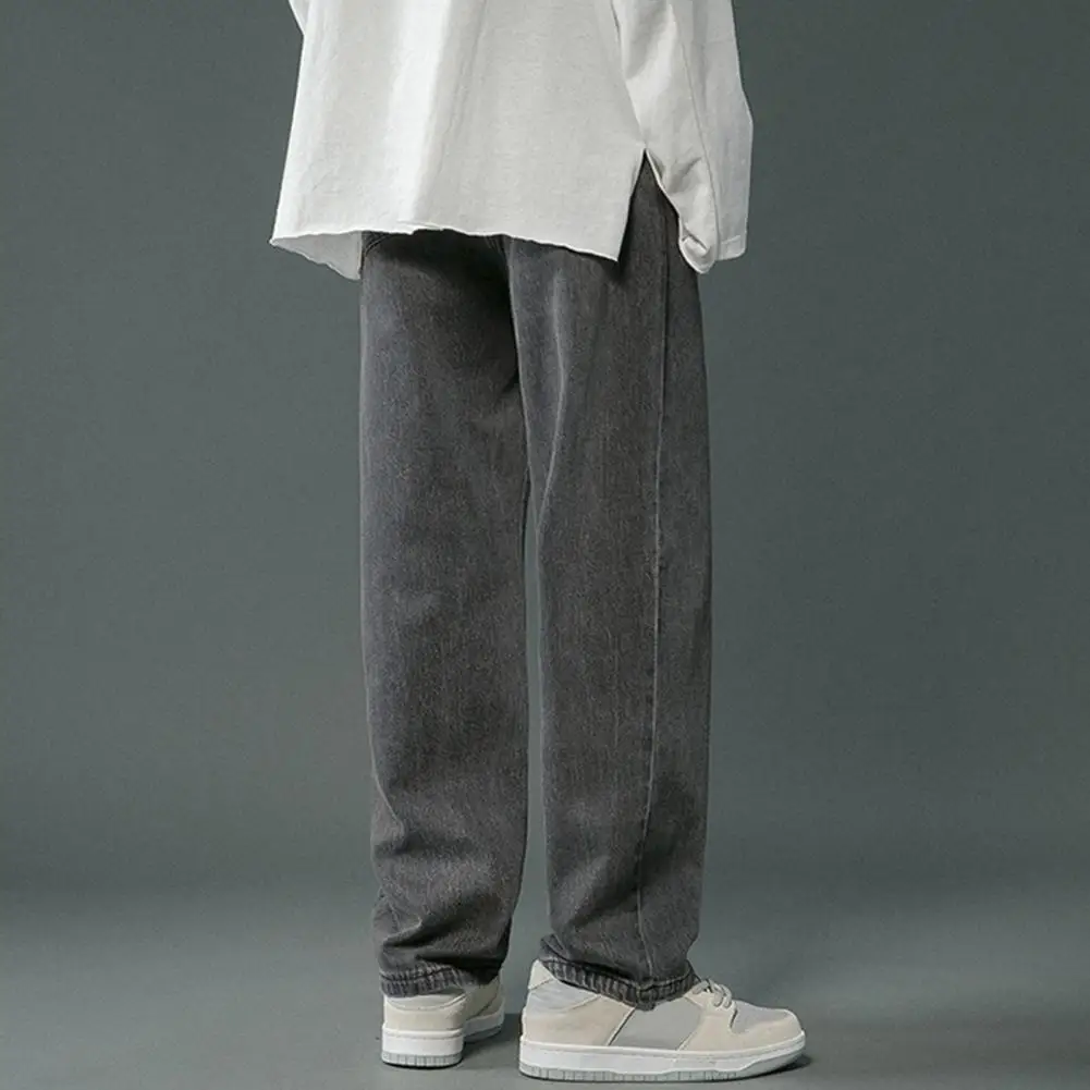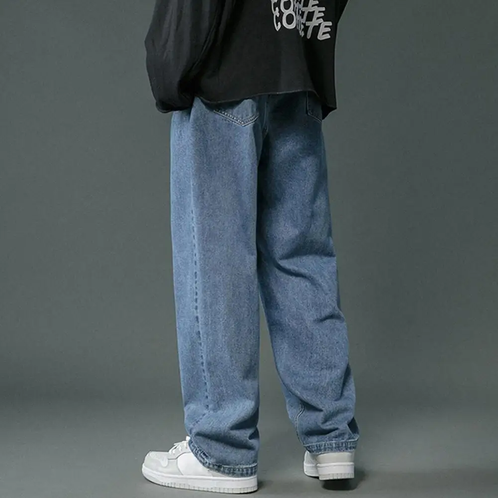 Straight-leg Men Jeans Men’s Wide Leg Denim Pants Hip Hop Style Washed Jeans with Pockets Classic Straight Casual for Spring