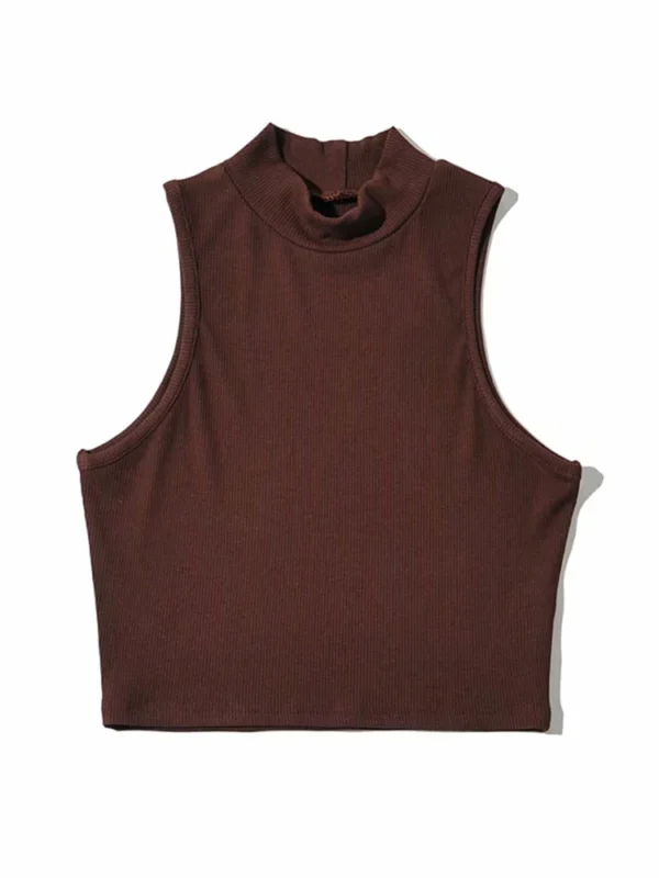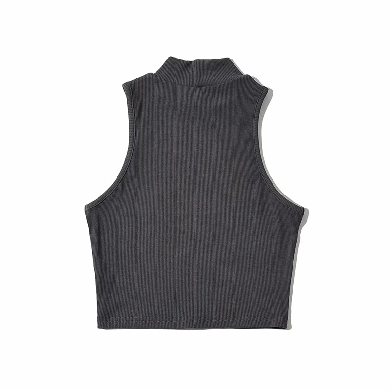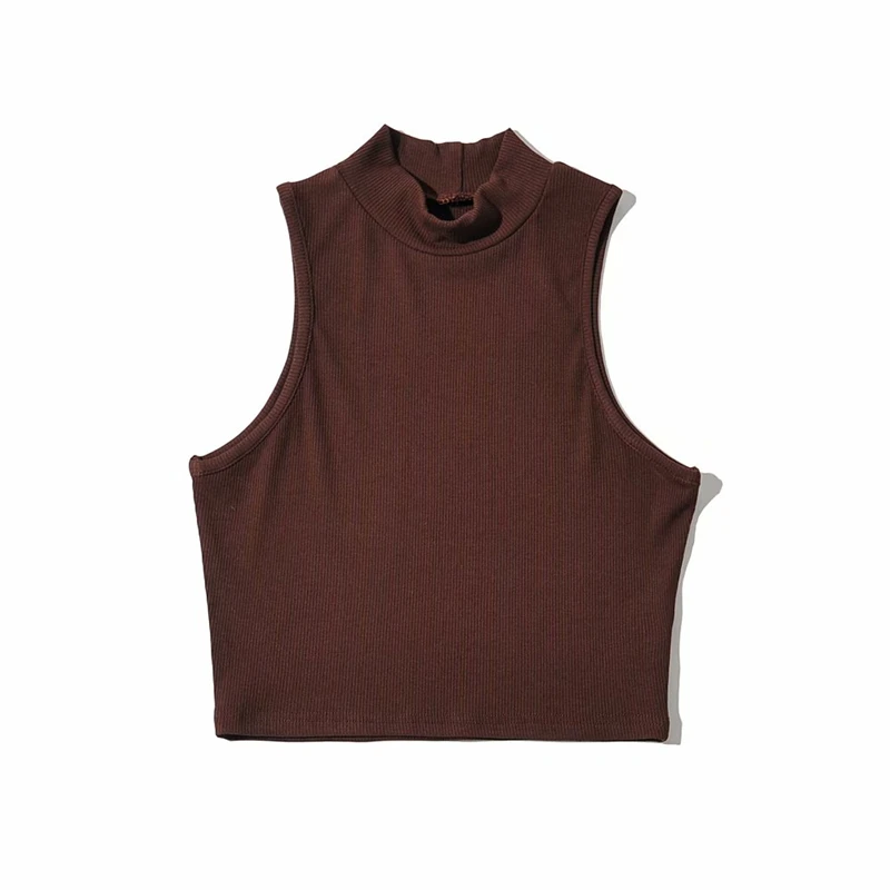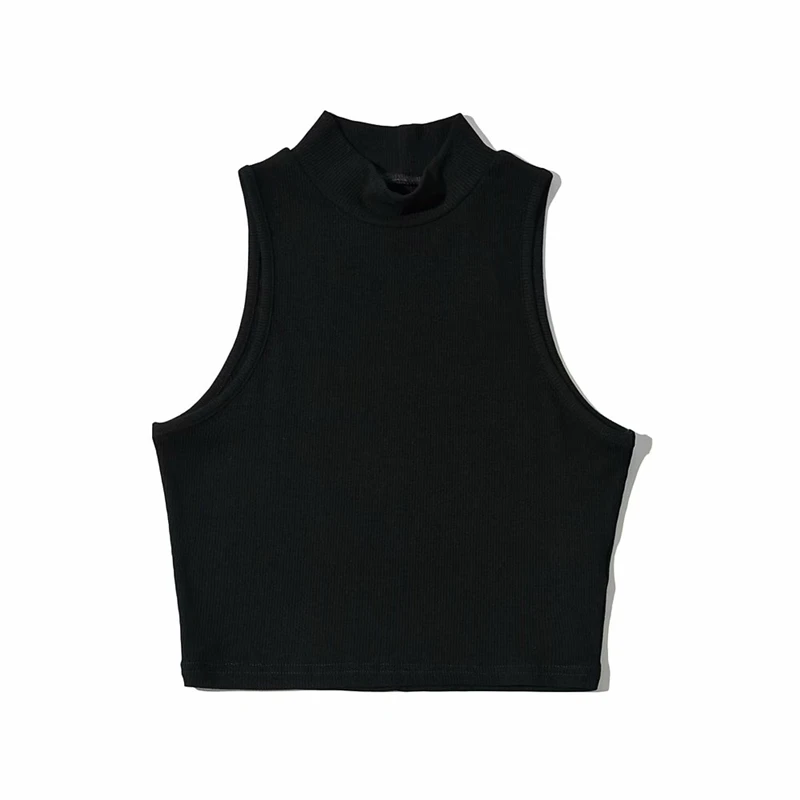 Summer Black Women Fashion Crop Top High Neck White Sleeveless Tank Tops 5 Colors