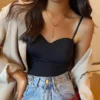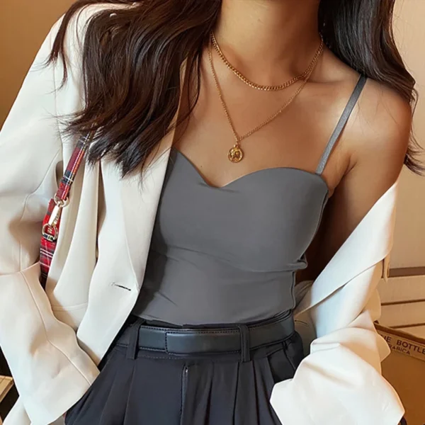 Be the first to review “Summer Women’s White Top Sleeveless Thin Straps Camisole Solid Color Tank Top with Cups Summer Ice Silk Comfortable Sling”